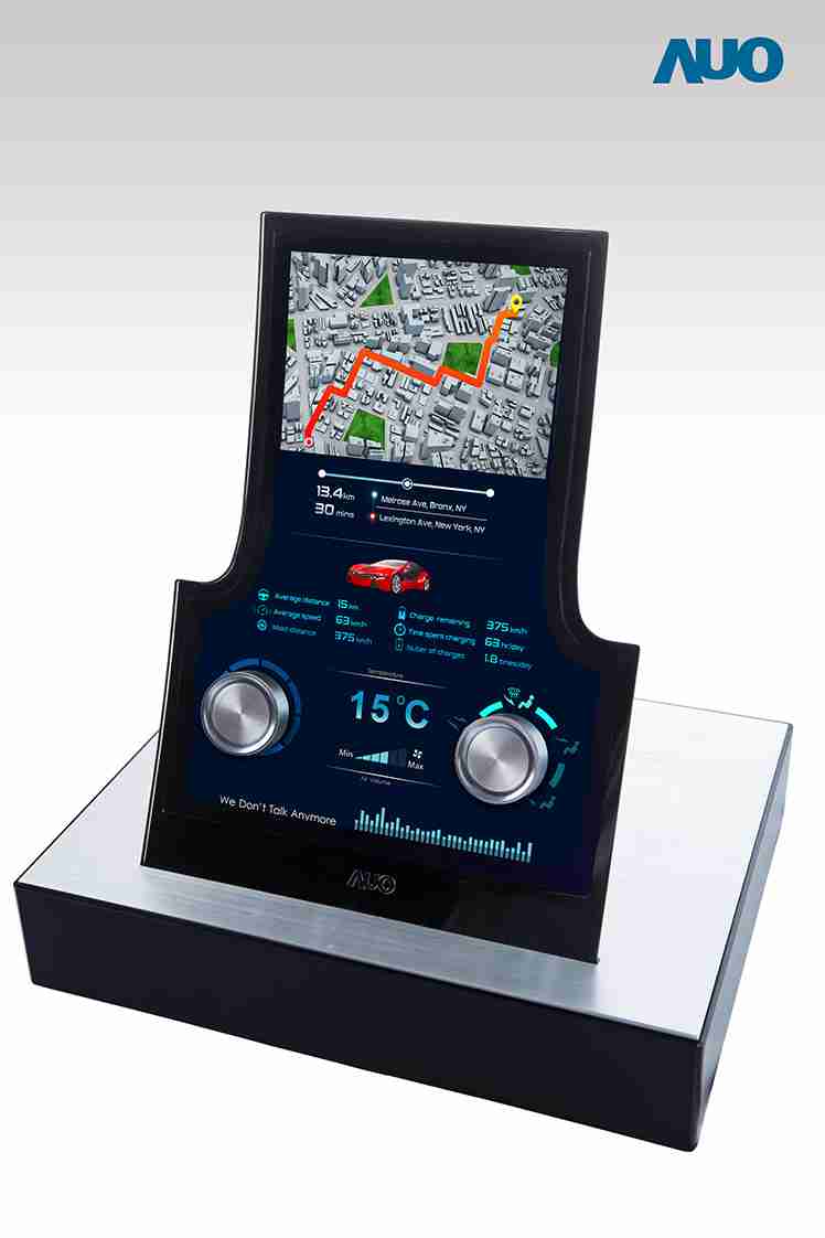 12.3 寸 Full HD LTPS 显示屏同样具备 1000 nits 高亮度,,搭载内嵌式触控技术,,,,整合驱动与触控 IC 于显示屏制程,,,使显示屏厚度降低,,,,为中控台创造更多机构设计空间。。应用于抬头显示器的 3寸 LTPS 显示屏具有高穿透率、、1200:1 高对比度度,,,,以及 297 PPI 高画素密度。。。液晶最高可耐受到 110C 的高温 (TNI) 而不液化,,,,在阳光高温下维持优异稳定的显示效果。。。。