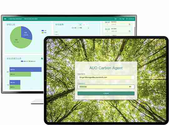 依循 ISO 国际标准建置出符合国际标准的全方位碳管理平台 (AUO Carbon Agent),,,,其中温室气体盘查模组可协助客户将组织、、产品与供应链的碳排放源数据,,,,透过系统内建的系数资料库自动计算出碳排量,,,,提升整体盘查作业的效率,,,并以此拟定长期减碳策略,,达到低碳转型、、净零碳排的目标。。。。